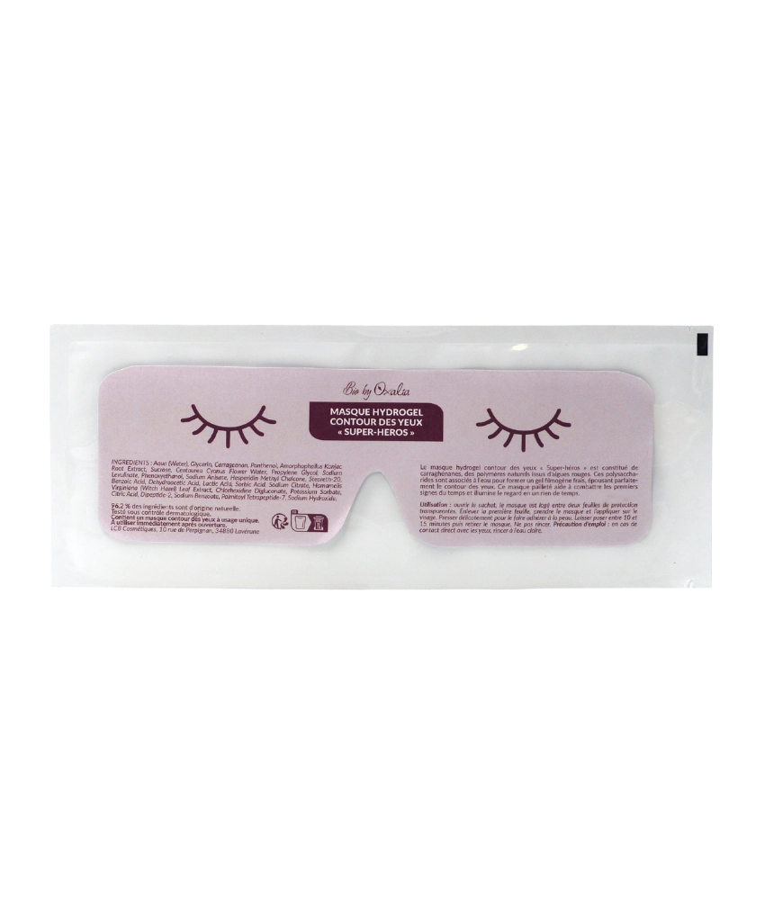Le masque hydrogel contour des yeux « Super-héros » est constitué de carraghénanes, des polymères naturels issus d’algues rouges. Ces polysaccharides sont associés à l’eau pour former un gel filmogène frais, épousant parfaitement le contour des yeux. Ce masque pailleté aide à combattre les premiers signes du temps et illumine le regard en un rien de temps.