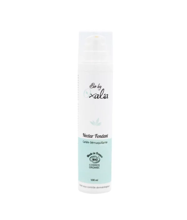 Cette gelée démaquillante 100 % naturelle est une alliée essentielle pour retirer tout type de maquillage, même waterproof. Elle associe quatre huiles végétales (jojoba, amande douce, ricin et tournesol) aux vertus hydratantes et protectrices pour nettoyer efficacement la peau tout en préservant son équilibre naturel. Son parfum frais et délicat et sa texture fondante procurent une sensation de bien-être et de confort. À l’application, elle se métamorphose en une huile fondante et détache tous les résidus de maquillage et de pollution. Au contact de l’eau, elle se transforme en une émulsion lactée légère qui se rince très facilement et laisse la peau souple, douce et nettoyée.