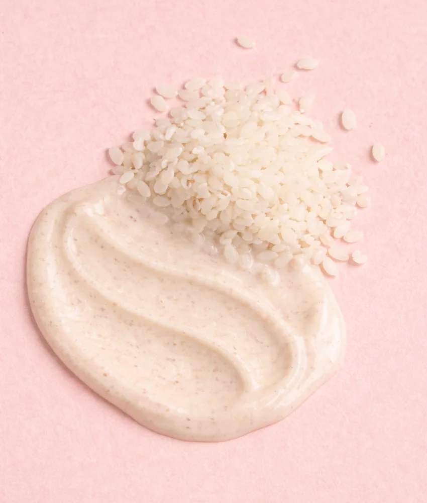 Poudre de riz : très légère, elle affine le grain de la peau et permet une exfoliation douce, pour un teint plus éclatant.