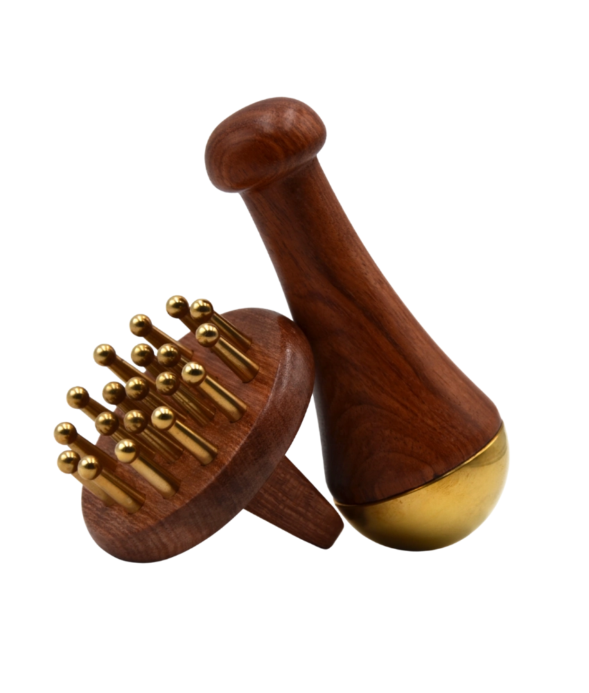 Inspirées de la tradition ayurvédique indienne, la Kansa Wand et la Kansa Brush sont deux outils de beauté utilisés depuis des millénaires. Leur alliage de bronze avec 60 % de cuivre est considéré comme un métal sacré et réputé pour ses vertus rééquilibrantes, favorisant l’harmonie des énergies et révélant l’éclat naturel de la peau.